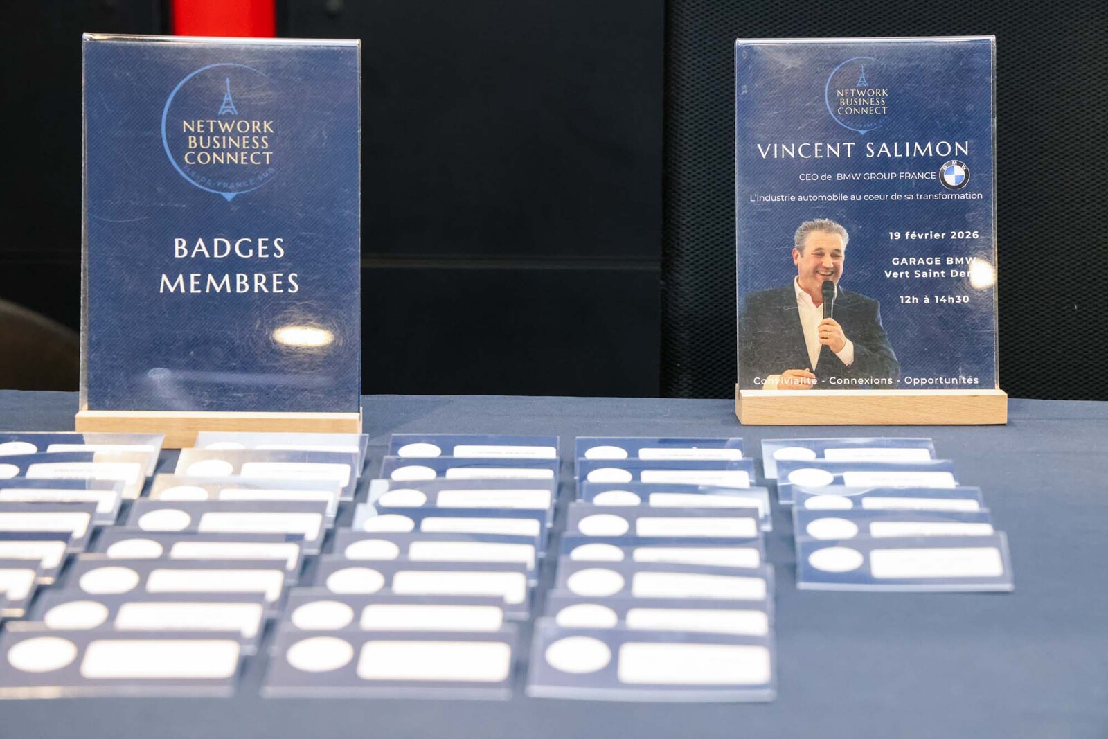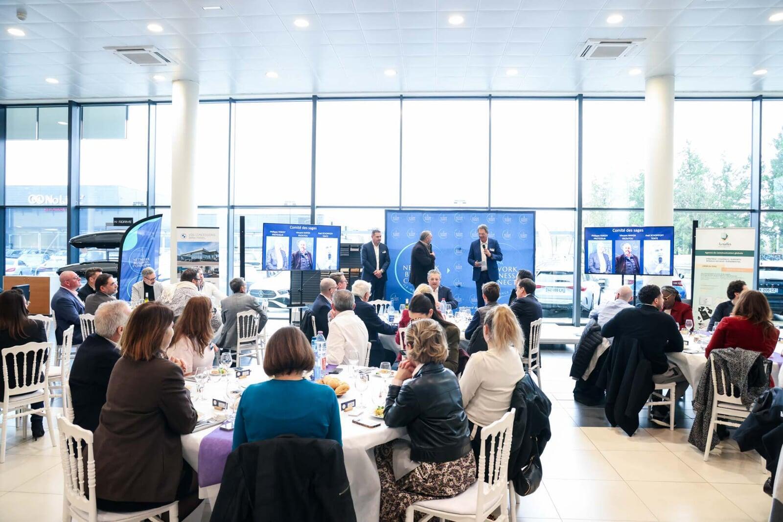 Le 19 février, c'est au sein de la concession BMW Mini de Vert saint Denis, transformée en salle de restaurant pour l'occasion, que les membres du NBC Sud et leurs invités se sont réunis. Ils ont eu la chance et le privilège d'assister à l'intervention de Vincent SALIMON, le DG France de BMW Mini. Il fut question des marques du groupe bien sûr mais aussi de sport, de normes, d'évolution de marché, de management. C'est dans une ambiance souriante que l'ensemble des 80 convives ont pu partager ce moment et échanger.